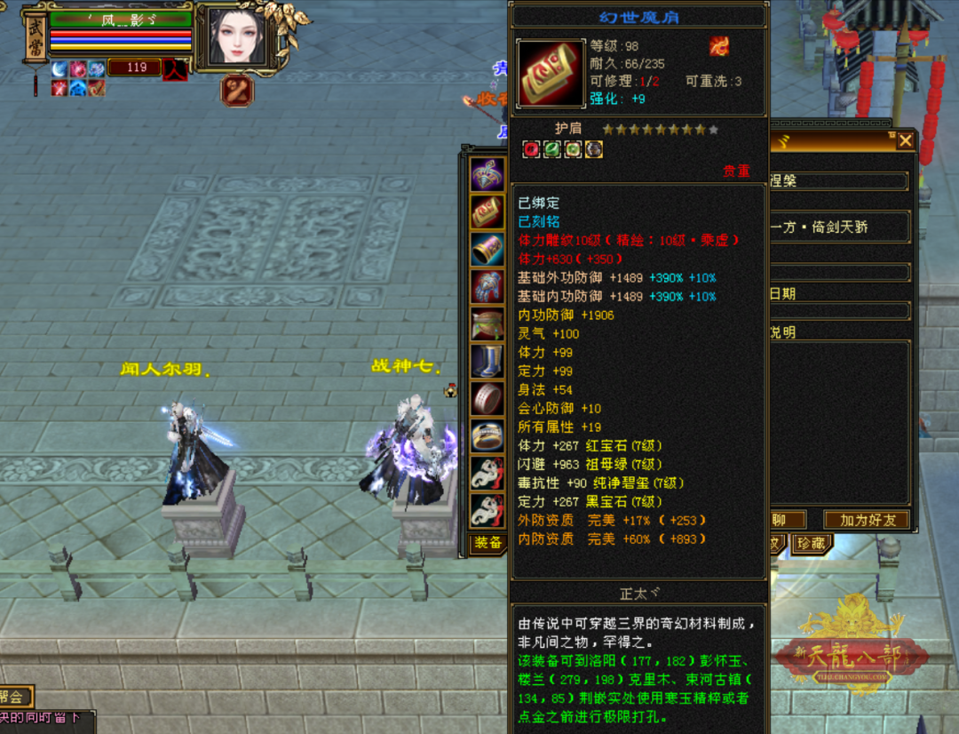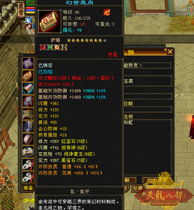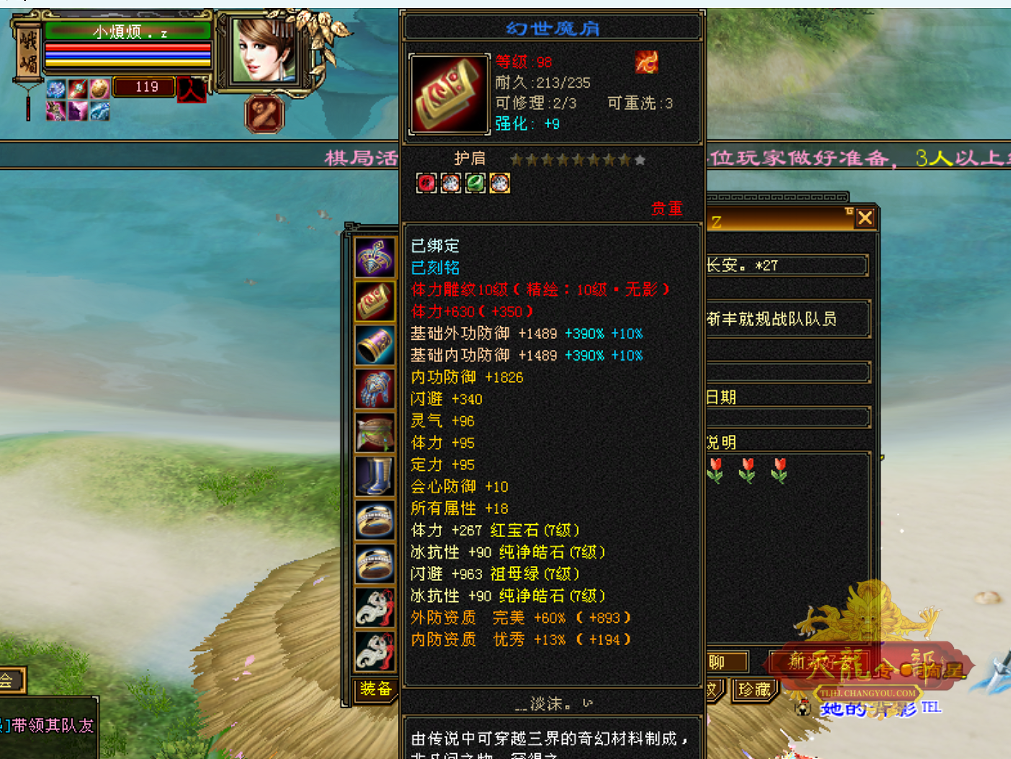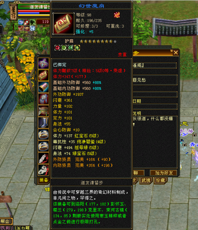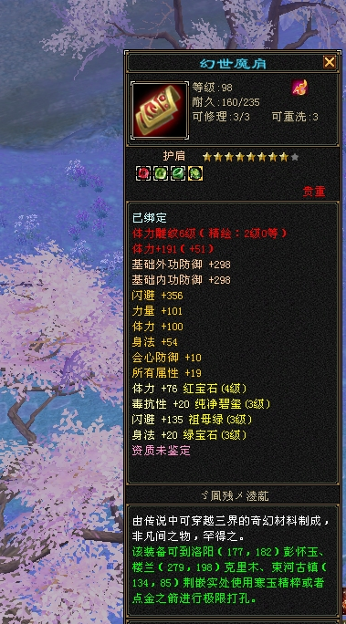 前方“手写词条”中 “基础词条”很重要 能够达到一线标准的“神装”,首先基础属性词条必不可少。 以太湖区极限全6逍遥“少侠”为例,这件装备的数值或许没有拉满,但体力、身法、会心防御和所有属性这些词条齐全,行情自然水涨船高。 当然对于7级号来说,既要追求词条组合全面,更在乎数值的极限,百体已然成为了分水岭。 全7天山“Phantom”的这件护肩虽说不是深蓝八星,也缺少了重要性不高的双防词条,但过百体力加上身法、所属兼具,无疑这也是可遇而不可求的极品。 “量身打造”更贴心 如果要求进一步提升的话,对应门派需求的词条组合更为关键。 太湖全7峨嵋“小烦烦”的这件护肩体力数值达到95,高阶峨嵋不可或缺的定力、会心防御都有,堪称是峨嵋极品。 “弑魔雪上漂”和“风影”两位少侠,作为全服气武当中的“风云人物”,自然也少不了神兵宝甲的辅助。 这两件肩部装备不仅数值高,词条组合也是兼具了门派刚需。 “绑定玄学出奇迹” 随着解绑机制的推出,让很多喜欢囤货的少侠都有了更多的机会圆梦,因此出现了不少“绑定出奇迹”的江湖传说。 下面的这几位大侠,都是绑定材料一发入魂。 特别是这位“道友请留步”,据采访,是在某个夜黑风高的神秘晚上,此君默念“阿里巴巴请开门”的咒语,用周年庆赠送的绑定材料,直接圆梦了八星。 对此小记者表示:只能说,好运来了,真是挡都挡不住。当然上述分享的这些“极品神肩”,在整个怀旧服只算是沧海一粟。 关于做手工,无论是技巧还是所谓“玄学”,相信大家都有着自己的独家秘诀。 小记者在这里祝愿每一位追梦人都能圆梦心仪的大八星。“心想事成”这才是天龙的最大乐趣。 |
