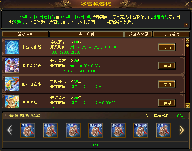 12月18日(下周四)“冰雪不夜城”将正式开门营业,这里是来自八妹的每日最新爆料环节~ 今天也是资讯满满,各位少侠坐稳,八妹要开始发车了 什么!前方“熊出没”? 全新场景抢先看 今年也是超大的漂亮场景!烟花、灯球、假面舞会、热气腾腾的大宴马上开席......各位喜欢冬日热闹气氛的少侠,确定不动心嘛(`3′) 减负马上就来 在即将开启的冰雪节中,各位少侠将能获得指定副本扫荡令牌,一键get副本掉落,省去不少刷刷刷的时间! 每日完成指定活动,轻松积累“巡游点”后,大侠们就能按照顺序依次领取。 苞米地往事 下周四更新之后,大家就可在每周二、周四、周六体验到熟悉的苞米地往事、冻冻脑瓜、冰雪大作战等有趣小游戏。 在苞米地往事中,各位少侠会化身可爱小苞米,一边躲避“花棉袄大黑熊”的追击,一边保护粮食。 成功完成粮食保卫战,就能获得包含好运券、回天神石在内的谢礼啦~ 冻冻脑瓜 遇到有智慧的神兽“傻狍子”怎么办?当然是开动少侠聪明的“脑瓜”,战胜这位博学的狍夫子! 如果遇到十拿九稳的问题,也别忘记及时拾取地上的卷轴道具,答对之后还能获得双倍积分! 冰雪大作战 独乐乐不如众乐乐,如此有趣的冰雪世界,又怎么能忍住不喊上好友一起打一场刺激的雪仗呢! 在冰雪大作战活动中,少侠们将随机分为壮壮虎、威威虎、蹦蹦虎、奔奔虎四方势力展开对决。 除此之外,甚至还能开着老虎冰雕横扫对手,制霸全场! 活动结束后,各位少侠不仅可根据队伍排名获得一份好运券奖励,还将根据冰雕等级,获得包含稀有坐骑: 阿拉斯基、绘金尘、淬魂髓、 鹿蜀魂玉、白银马鞍等在内的诸多惊喜好礼。 |