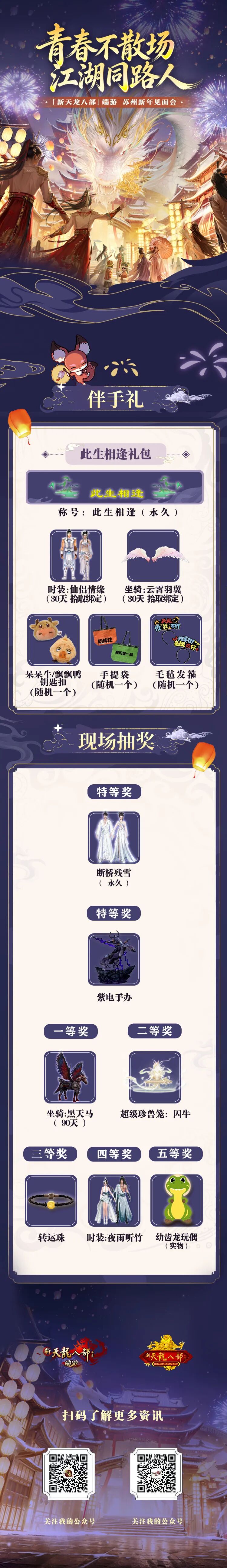 八妹也是仔细收集了一番 参与见面会即有精美伴手礼相送 内含永久称号、精美周边等奖励 现场还将送出永久时装:断桥残雪 超级珍兽笼:囚牛、紫电手办 等超多惊喜好礼(づ′▽`)づ |